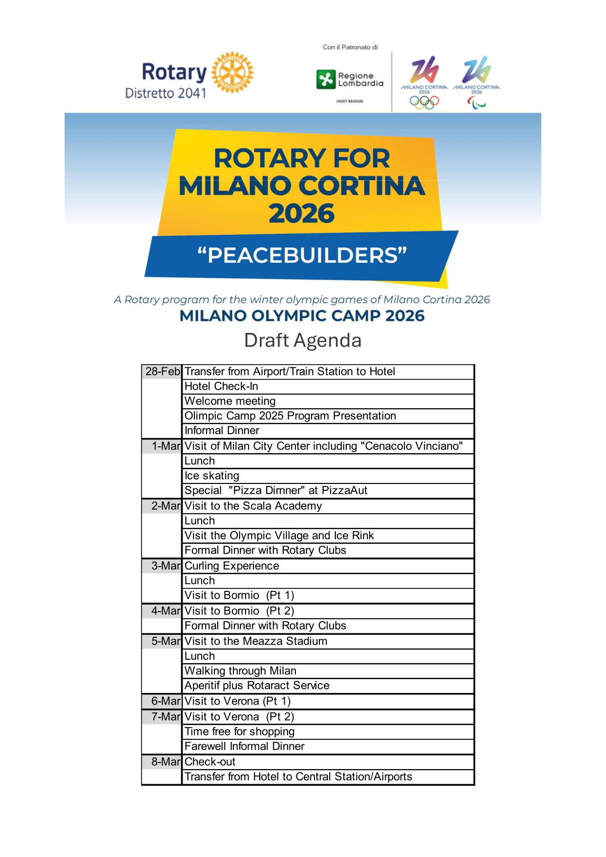 Aéroport ou gare de Milan. Les Rotariens assureront l'assistance pour le transport vers l'hôtel.
